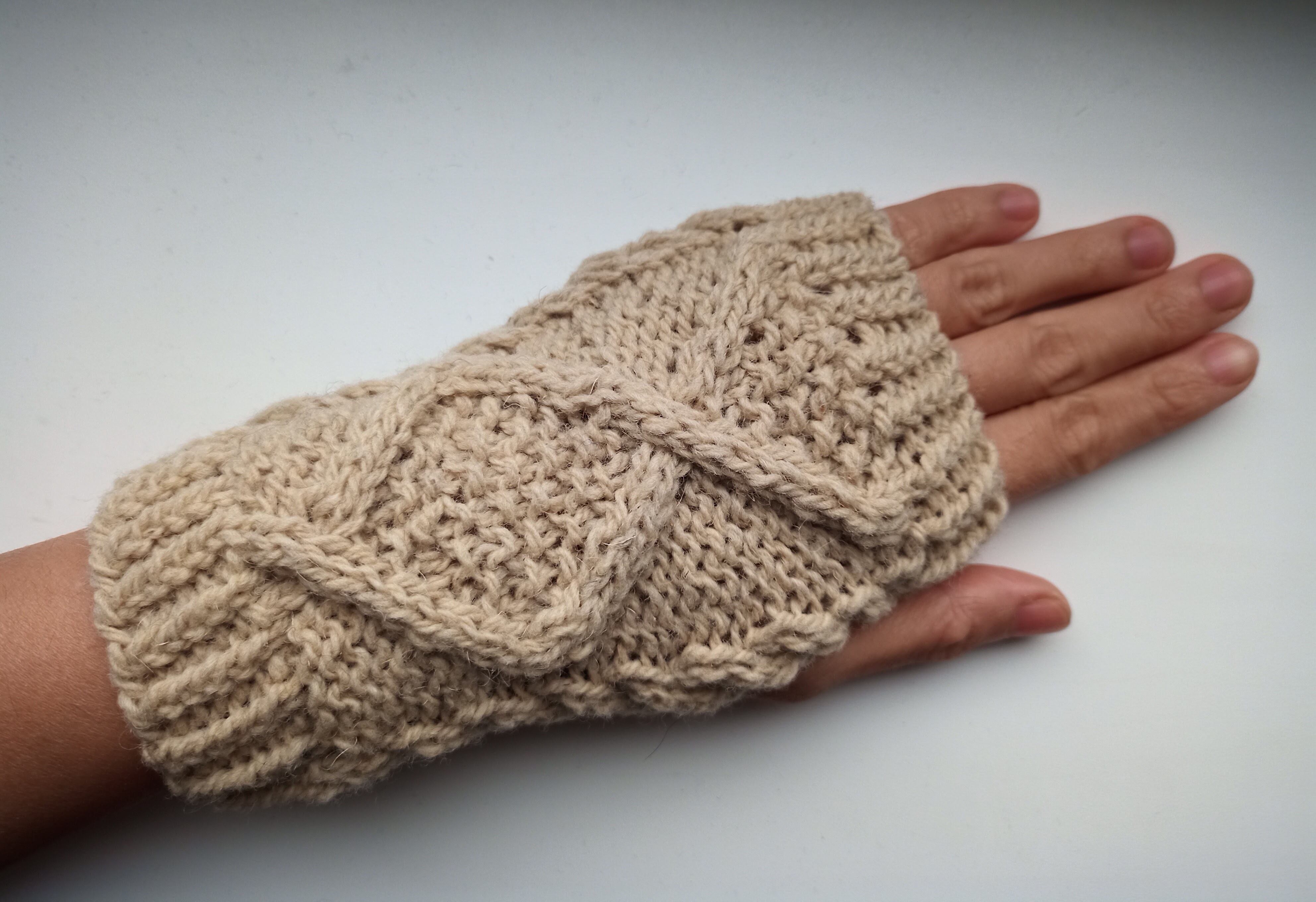 リトアニアウールの自然な色と質感をそのまま生かし、手首やさしくフィットするように編み上げました。